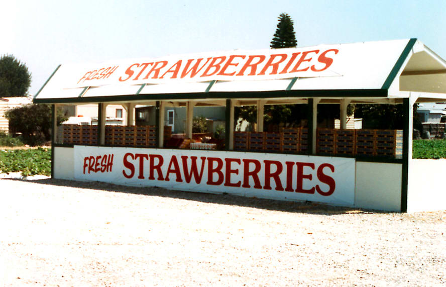 Founders Chad and Troy McWhinney open a roadside stand near Knott’s Berry Farm where they sell local strawberries.